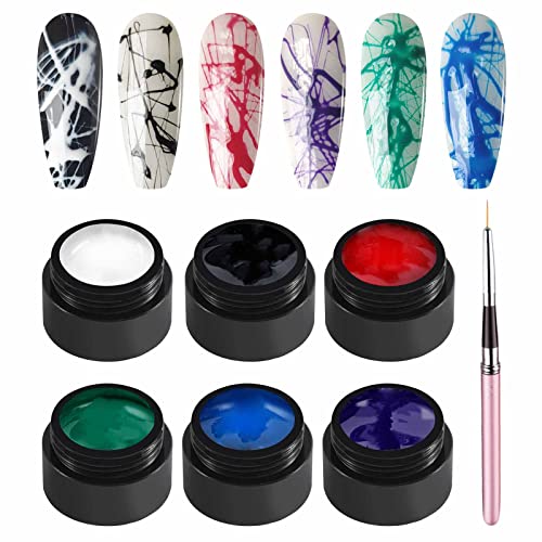 Spider Nagel Gel UV Set: Dieses spinnengel farbset enthält 6 farben malgel und 1pcs nail brush. Es ist einfach zum handmalen, zeichnen, ziehen von Linien, umrissen usw, zu verwenden.