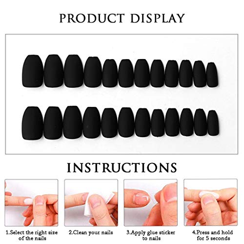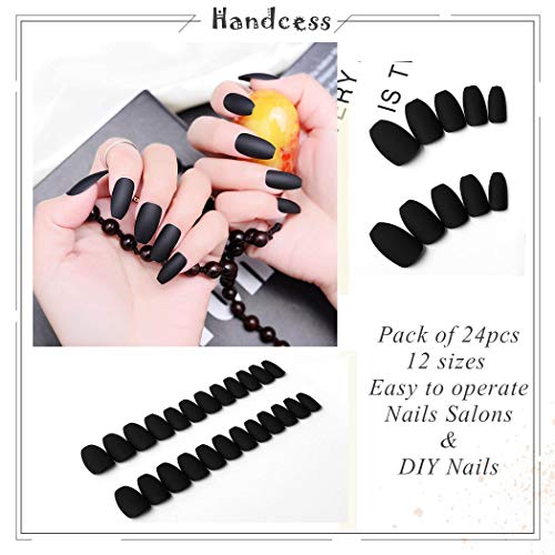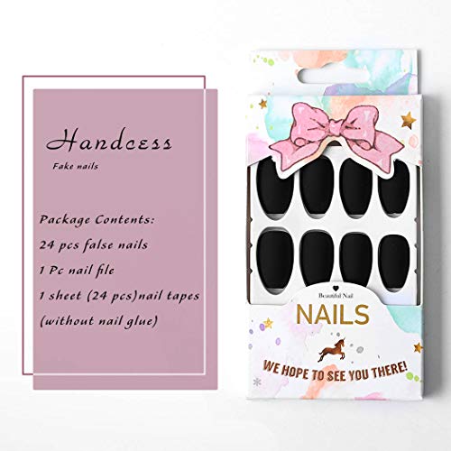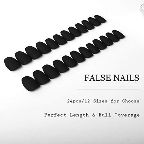 Handcess 24 Stücke Ballerina Reine Farbe Matte Sarg Nägel Full Cover Matte Falsche Gel Nägel Kunst Tipps Sets (Schwarz)