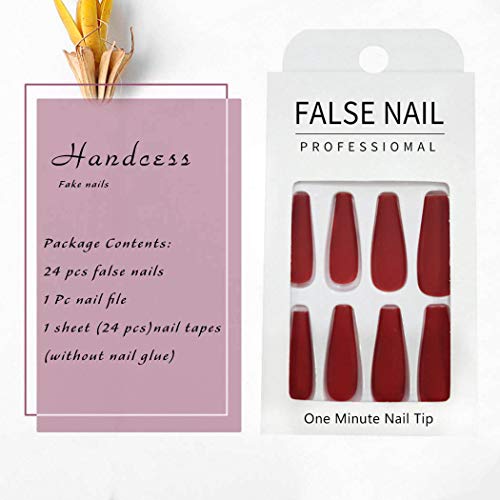 Zu den falschen Nagelspitzen in reinen Weinfarben gehören ein 24-teiliger Satz gefälschter Nagelspitzen, kostenlose Nagelkleberaufkleber und eine Mini-Nagelfeile. Für professionelle Nagelspezialisten oder Nagelkunstlerner ist dies ganz einfach. Sie eignen sich für Nagelstudios oder zum Entwerfen Ihres eigenen Stils und Musters.