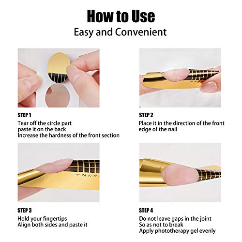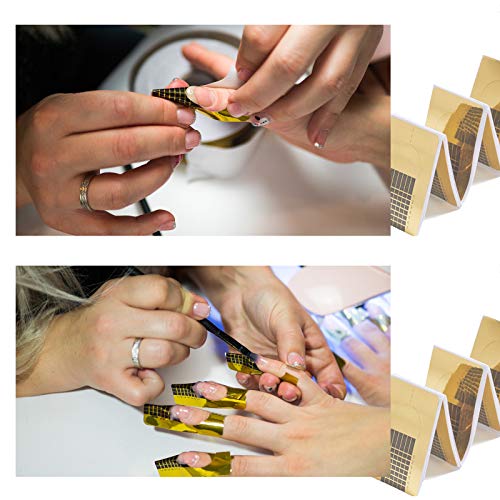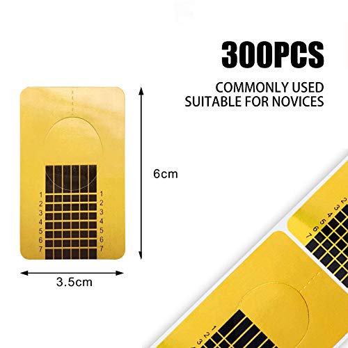 Bequem und praktisch: 300 Segment selbstklebende, hochwertige Square-Gold Modellierschablonen auf Rolle. Quadratisches Design, mit Skala, bequem und praktisch. Sie können die Länge jedes Nagels einfach