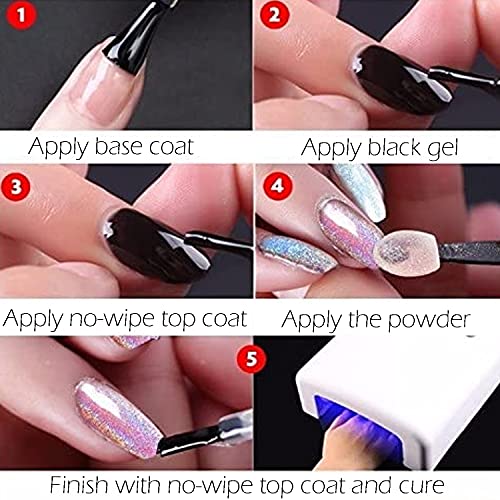 KUKA holografisches Acrylpulver stattdessen Nägel kann leicht zu Hause aufgetragen werden. Was auch immer, was Sie ben|tigen, ist eine Grundierung, unser holografisch gefärbtes Acryl-Nagelpulver, einen Gel-Decklack und eine UV- oder LED-Lampe. Nägel in Salonqualität zu Hause könnten Mithilfe unserem holochromen Nagellack-Pulver nicht einfacher sein.