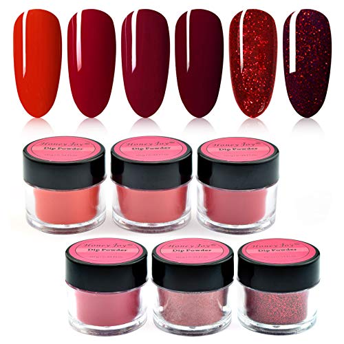 Honey Joy 6 BOX/SET Dark Wine Red Glitter Dip Powder Fine Dipping Powder Colors No Need Lamp Cure,Like Gel Polish Effect…