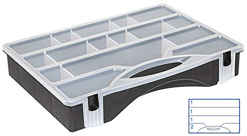 - Großsortimentskasten mit 18 abwandelbar einsetzbaren Trennstegen