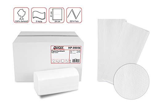 SAUGSTARKER STOFF: Die Papierhandtücher sind ganz robustem Zellstoff 2-lagig in hochweiß, der die Feuchtigkeit vulgo bei sparsamem Gelenksverschleiß zuverlässig aufnimmt. Ein bis zwei Blatt genügen summa summarum zum Händetrocknen.