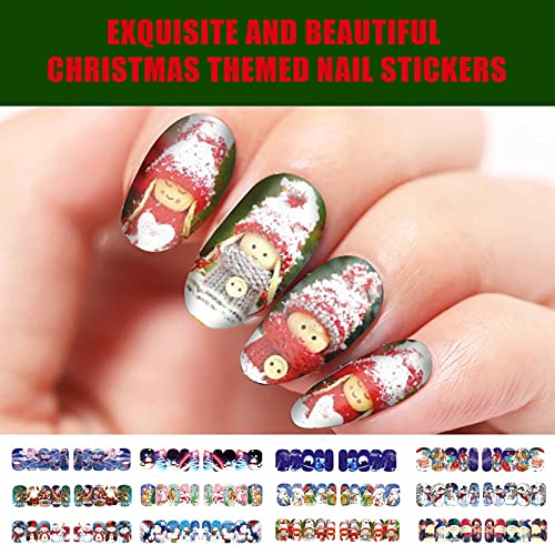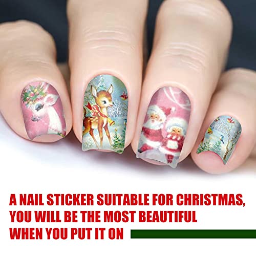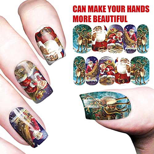 Perfect Nail Sticker Set: 12 Sticker sind perfekte weihnachtliche Modeaccessoires. Enthält eine Vielfältigkeit klassischer Weihnachtsbilder: Weihnachtsmann, Weihnachtsmütze, Schneemann, Weihnachtsglocke, Weihnachtsbaum, Alces alces und andere Weihnachtsschmuck.