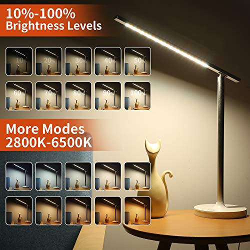 【50 einstellbare Lichtauswahlen Schreibtischlampe】Tischlampe mit 5 Farbmodi (❶Weißlicht 100% .❷ Weißlicht 75%, gelbes Licht: 25% ❸Weißes Licht: 100%, Gelbes Licht: 100% ❹Weißes Licht 25%, gelbes Licht: 75% ❺Gelbes Licht 100%) und 10 verschiedenen Helligkeitsstufen wählbar, um sich optimal an Ihre Bedürfnisse anzupassen.