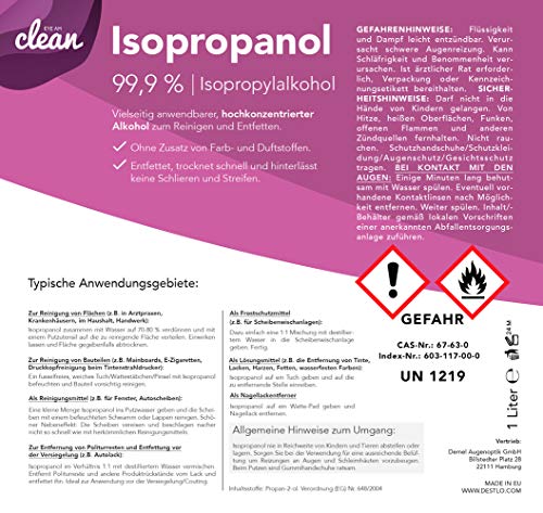 NEU: Isopropanol IPA 99,9% â Reinigungsalkohol 1 Liter für Küche, Haushalt, Kosmetik und Industrie