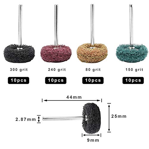 ABRASIVE BUFFING WHEEL SET – Jede Körnung 10 Stück, insgesamt 40 Stück, Braun 80 Körnung, Grün 150 Körnung, Rot 240 Körnung, Schwarz 300 Körnung