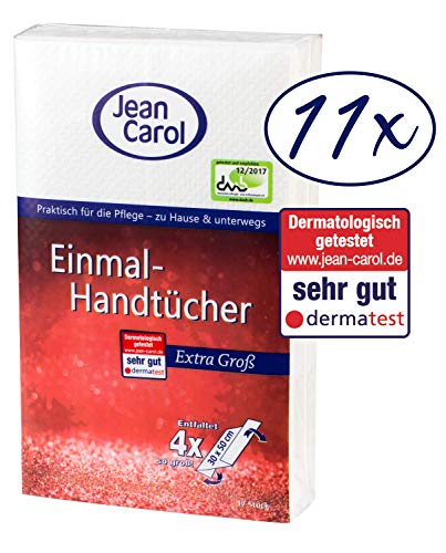 Jean Carol Einmal-Handtücher XXL, Extra stark, 17 Stück, 11er Pack (11 x 17 Stück), trockene Tücher für zuhause und auf Reisen
