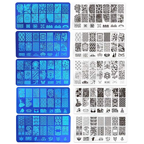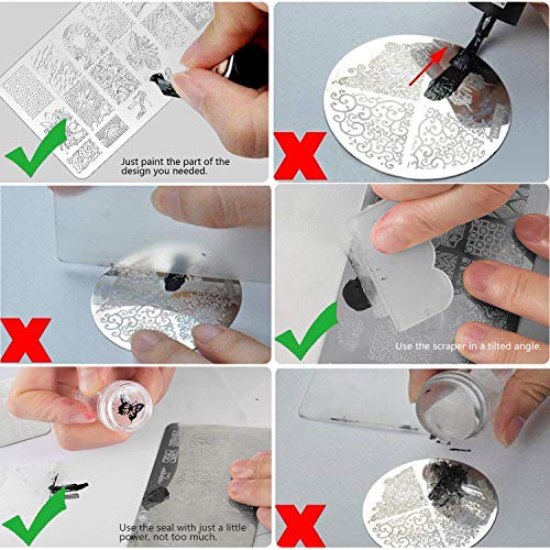 Packungsinhalt: 5 Fetzen Nail Stamping Plates + 1 Stampfer + 1 Schaber + 10 Acryl Nail Art UV Gel Clip