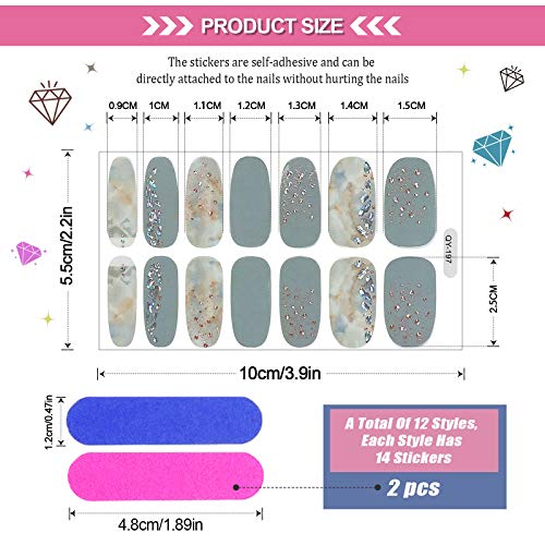 【Perfektes Set】 Es gibt 12 Teil Nail Art Aufkleber und 2 Teil Nagelfeilen. Die Farbe und das Design jedes Nail Art-Aufklebers sind vielfältig, sodass Ihre Nägel jeden Moment strahlen.