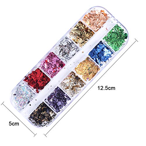 WAS SIE BEKOMMEN- 3 Schachteln / Set, jede Schachtel mit 12 Gittern, jedes Gitter mit gemischten Farbfolienflocken, Sie können Ihre gewünschten Nagelkunst machen.