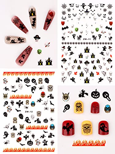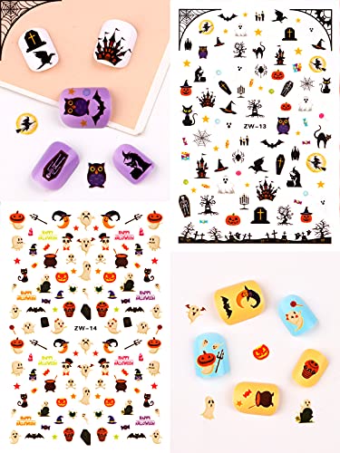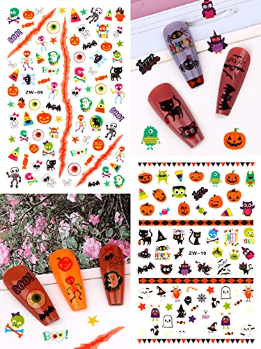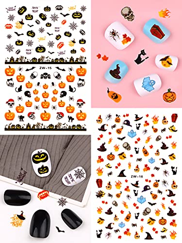 ✔Halloween Holiday Nail Sticker: 8 Blatt Halloween 3D Nagelsticker für Mädchen, liefern Nageldekoration mit verschiedenen Mustern: Kürbis, Spinnweben, Kreuz, Totenkopf, Spinne, Geist, Fledermaus, Skelett und so weiter Halloween.