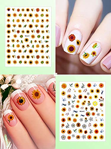 Summe: 12 Blatt selbstklebende Sonnenblumen-Nagelaufkleber