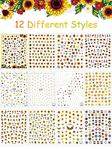 🔅Blumen-Nagelaufkleber: Sie erhalten 12 bunte und schöne selbstklebende Nail Art-Sonnenblumenaufkleber in einem Satz. Die Nagelaufkleber enthielten verschiedene Blumenmuster. Eine Diversität von Mustern kann Ihren unterschiedlichen Anforderungen gerecht werden.