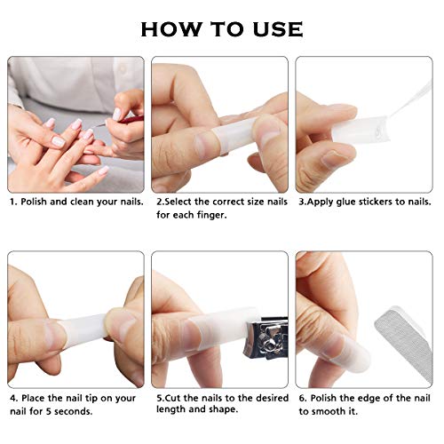 【Einfach zu bedienen】Wählen Sie Ihre Nagelspitzengröße und bürsten Sie eine Schicht Decklack auf Ihre natürlichen Nägel auf. Dann das Haftgel auftragen und auf den Nagel drücken. Sie können auch mit buntem Nagellack und schönen Dekorationen bemalen, damit Ihre Nägel schöner und charmanter aussehen.