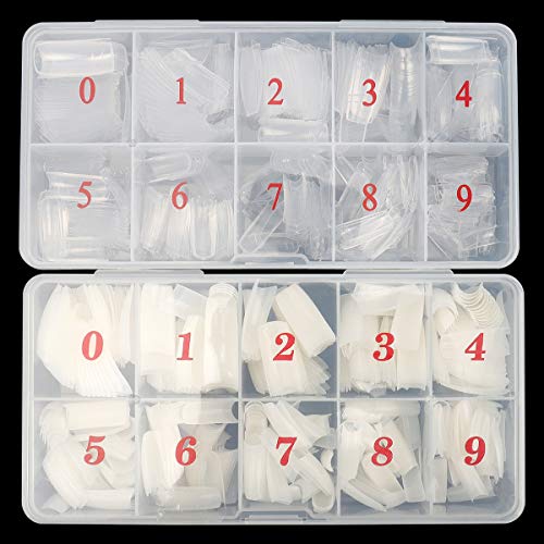 【Verschiedene Größen und Typen】Paket kommt mit KETIEE 1000 Stück langen Sargnägeln, darunter 500 Stück transparente Sargnägel und 500 Stück natürliche Sargnägel, erhältlich in 10 verschiedenen Größen, vornummeriert mit 0-9 für die Definition, einfach zu markieren und zu behalten, ausreichend für Sie, um Ihre eigene Nagelkunst zu kreieren.