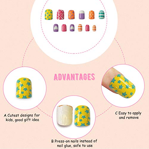 🌻【Mehrfachbewerbung】Unsere falschen Nägel eignen sich hervorragend für Kinder, Mädchen oder Frauen mit kurzen und kleinen Händen. Sie eignen sich für Nagelstudios und Heimwerker-Nageldesigns zu Hause. Mehrere süße Muster ekoration von Mädchennägeln.