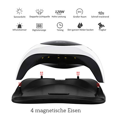 Einfach zu Bedienen: Abnehmbare magnetische reflektierende Platte, bequemer für das Hilfs…und Reinigen des Zehennagels, großer LCD-Bildschirm zur Anzeige der Aushärtezeit, bequem den hellen UV-Trockner des Gelnagellacks zu verwenden.