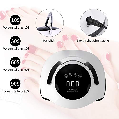 LED UV Lampe für Gelnägel – 120W UV Nageltrockner für Gel Nagellack, Auto-Sensor Aushärtelampe mit 4 Timer Einstellungen…