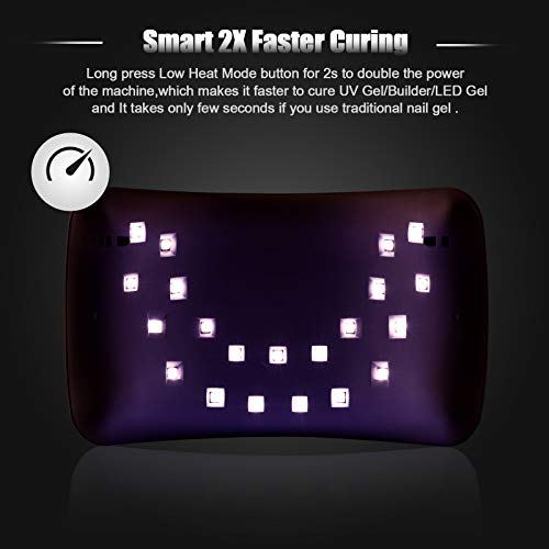 ➤ Smart Double Speed Curing: Ausgestattet mit 21 Teil UV LED Lampe mit Weißlichttechnologie mit doppelter Wellenlänge von 365-405nm, die Augen und Haut nicht schädig. 48 Watt Leistung und schnell trocknbar, Trocknungseffizienz um 50% im Vereinbarung zu anderen Trocknern.