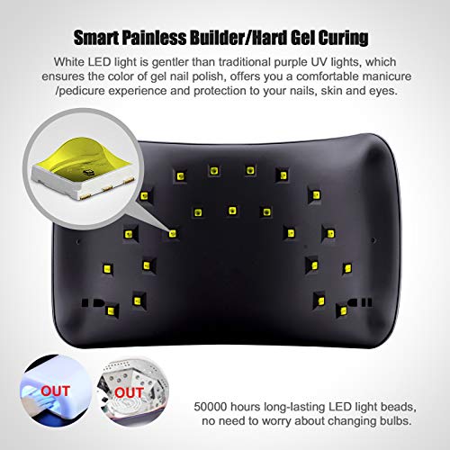 ➤ Smart Sensor und Intelligent Funktion: Unser Lichthärtungsgerät ist mit Autosensor für Ein- und Ausschalten (kein Schalter) versehen. Hand rein, Licht an; Hand raus, Licht aus. Es schaltet sich automatisch für 30s, 60s, 99s nach Ihren Bedürfnissen ein.