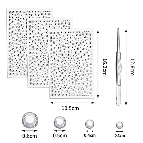 【Packungs inhalt】Das Paket Enthält 3 Blätter Glitzersteine Selbstklebend Sticker (3/4/5/6 MM)aus Acryl und 1 Pinzette(12,5 cm). Die Werkzeuge Sind Lückenlos und Einfach zu Bedienen.