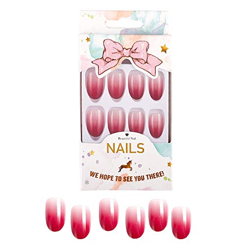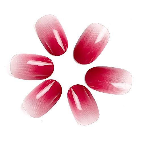 LIARTY 24 stücke 12 Verschiedene Größen Ellipse Künstliche Falsche Nägel Glatte Dunkelrosa Rot und Nude Graduierte Farbe…