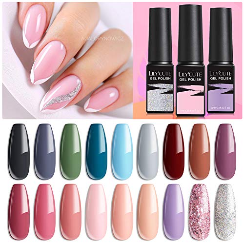 LILY’CUTE UV Nagellack Set Rosa Glitzer UV Farbgel Set, Schellack Nagellack 21 Stück Gel Nagellack Nudefarben Gelnägel…