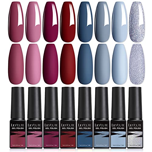 LILY’CUTE UV Nagellack Rot Blau Gel Nagellack Set Schellack Grau Silber Glitzer U V Gelnägel Farben Gel Polish für Nagel…
