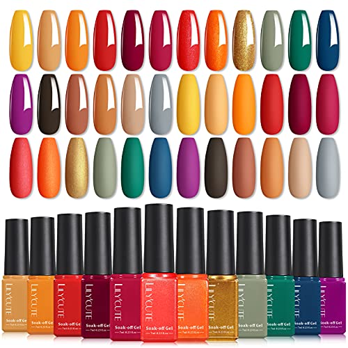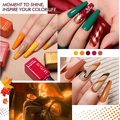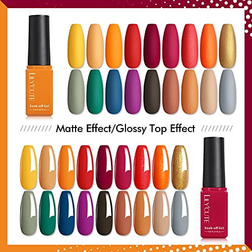 LILY’CUTE Gel Nagellack Set,18+3 UV Nagellack Set Herbst Farben UV Nagellack Set Soak Off Braun Gelb Orange Glitzer…