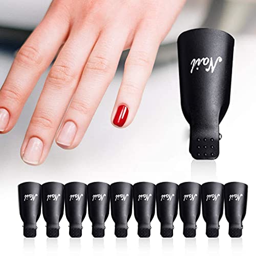 Liu X 10 Stück Acryl Nail Art Soak Off Clip Cap UV Gelpoliermittel Entferner Wrap Nail Tool Nagellackentferner(Schwarz)