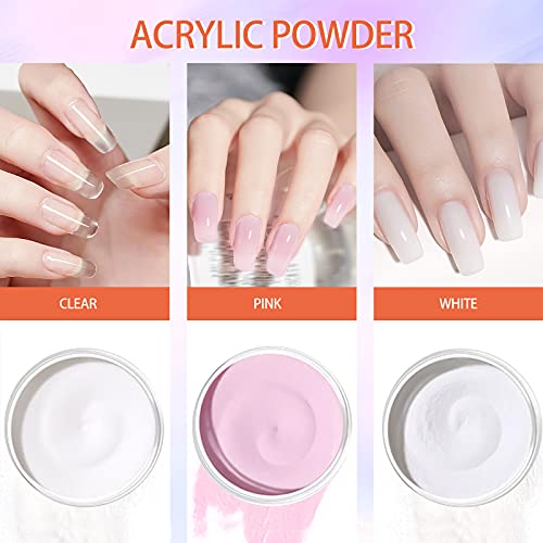 👉PAKETINHALT: 3*Acrylnagelpulver (transparent, rosa, weiß) 20 g/pcs; 1 * 40 ml Acryl-Flüssigmonomer, 1 * Klarglasschale, 1 * Acrylnagelbürste, 10 Teilbereich Nagelverlängerung Nagelform.Diese Farben können auf natürlichen Nägeln und falschen Nägeln verwendet werden, um eine 3D-Nagelkunstdekoration herzustellen, oder mit Glitzern gemischt oder mit Muschel-Opal-Flocken überzogen werden, um hervorragende Ergebnisse zu erzielen