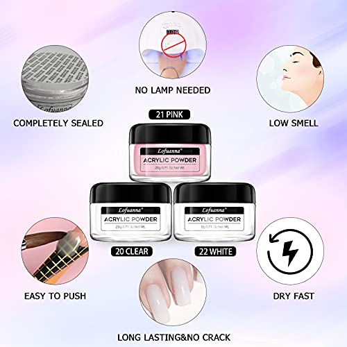 lofuanna Acryl Powder Set, Acryl Pulver Und Acryl Liquid Monomer Set ,Nagellack Acrylnägelpulver Sammlungsset von 3…
