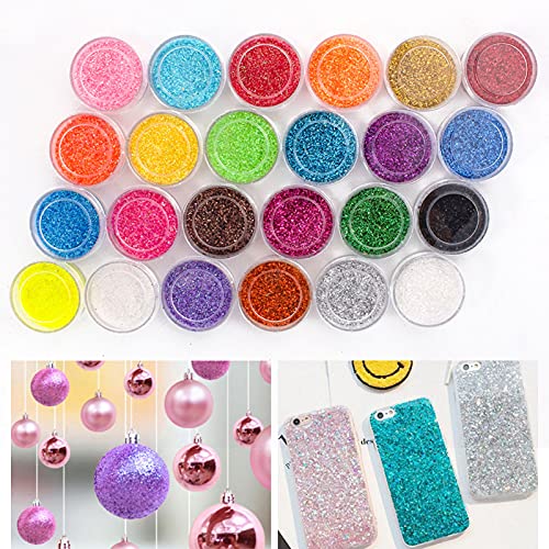 Wir bieten eine sehr große Auswahl an wunderschönen, abwechslungsreichen, glänzenden und funkelnden Glitzerpuder an, mit 24 unterschiedlichen intensiven Farbenum Ihre tolle Erschaffung zu fertig werden!