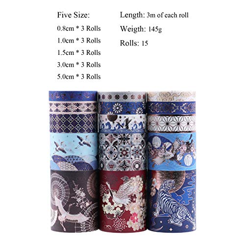 Produktabmessung: 3m jeder Rolle, Breite 0,8 cm / 1,0 cm / 1,5 cm / 3,0 cm / 5,0 cm. Insgesamt 15 Rollen mit mehreren Mustern.