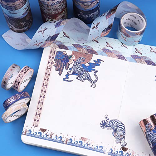 Lychii Washi Tape Set, 12 Rollen Gold Stamping Masking Tapes, Multi-Pattern Dekoratives Klebeband Kollektion für Kunst und Heimwerker, Verschönern Bullet Journals, Planer, Scrapbooking