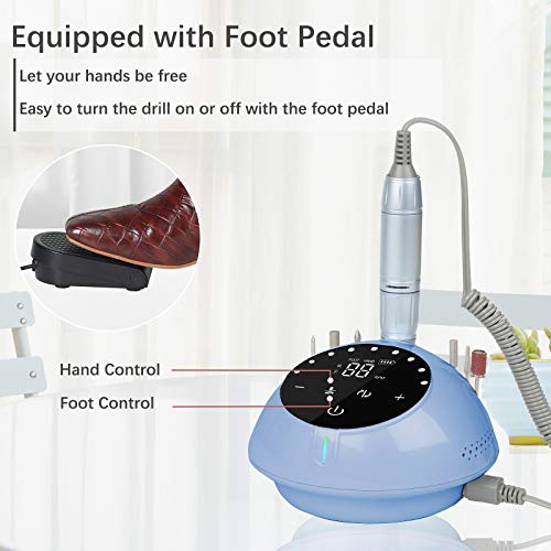 🔹Fußpedal und zwei Drehrichtungen: Handmodus und Fußmodus zur Auswahl. Das Fußpedal kann Ihre Hände befreien und die Maniküre bequemer machen. Dieser elektrische nagelfräser hat die Umwandlung der Vorwärts- und Rückwärtsdrehung, die die Probleme von Linkshändern und Rechtshändern lindert.
