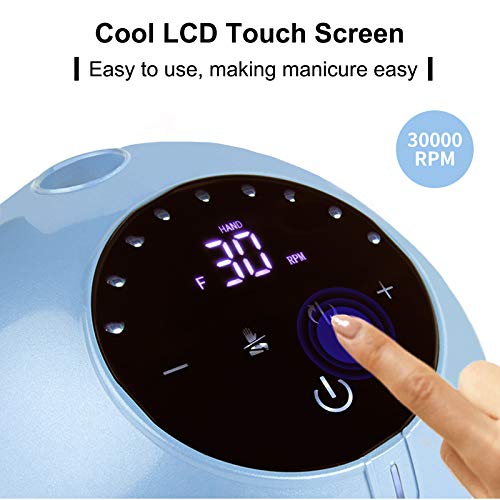 🔹LCD-Bildschirm und berührungsempfindliche Steuerung: Der Touchscreen dieser elektrisch maniküre set verfügt über ein um 157 Schattierung geneigtes ergonomisches Design, das Ihre Bedienung komfortabler macht. Auf dem LCD-Bildschirm werden die aktuelle Geschwindigkeit und Drehrichtung des Handstücks angezeigt, sodass Sie leichter Ihre eigene Drehzahl für das Nagellackieren abkommandieren können.