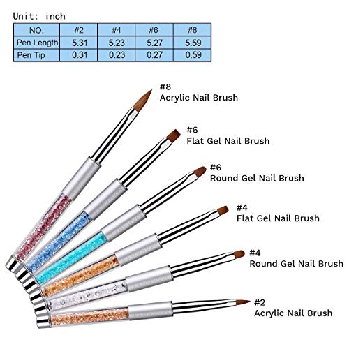 Dieses Material ist sehr komfortabel, wasserdicht, weich, hart im Nehmen, glänzend, das wird als das beste Material für Bürste angesehen. Feine Details: Dieses Set verfügt über insgesamt 6 feine Bürsten, einschließlich # 2 Acryl-Pinsel, # 4 # 6 flache und runde Gel Pinsel, # 8 Schnitzen Pinsel mit vilfältigen Größen. Mit der Bürste kann man bestimmte viele perfekte Muster kultivieren.
