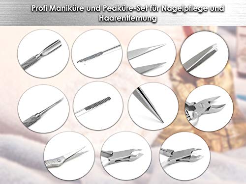 Die Instrumente jeder rostfreiem Edelstahl versprechen eine lange Lebensdauer und eignen sich Stattdessen die gründliche Pflege von Nägeln, Nagelhaut und Haarentfernung