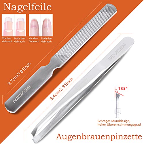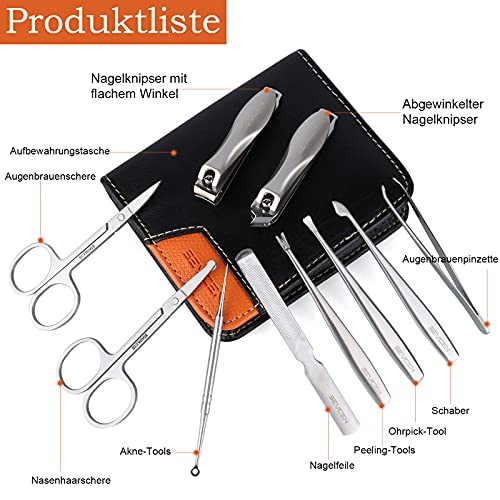 🙋♀️🧡 „Anwendungsbereich“ Die Aufbewahrungstasche enthält 10 Werkzeuge (Nagelknipser*2, Ohren*1, Nasenhaarknipser*1, Augenbrauenknipser*1, Nagellack-Werkzeug*1, Peeling-Werkzeug*1, Kill Skin Spachtel *1, Augenbrauenpinzette*1, Akne-Akne-Nadel*1) Lernen Sie die tägliche Pflege von Händen, Füßen und Gesicht kennen.
