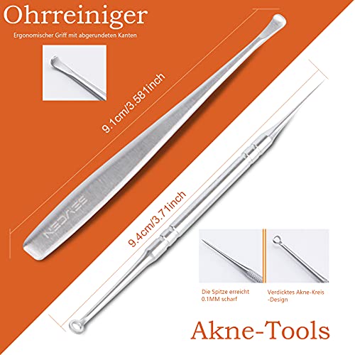 Dieses Produkt enthält: 1. Flachwinkel-Nagelschere, 2. Facettennagelschere, 3. Augenbrauenschere , 4. Nasenhaarschere, 5. Nagelschärfgerät, 6. Augenbrauenpinzette, 7. Y-förmiges Peeling-Werkzeug, 8. Peeling-Schaber 9. Ohrreiniger 10. Anti-Akne-Akne-Tool