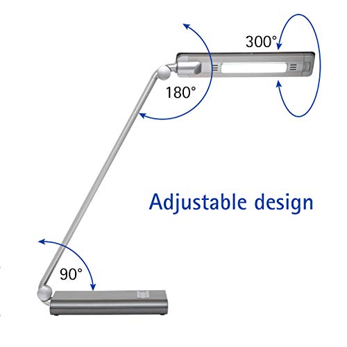 Arm und Leuchtenkopf der Schreibtischlampe sind ganz Aluminium, die Höhe in normaler Arbeitsstellung beträgt ca. 40 cm