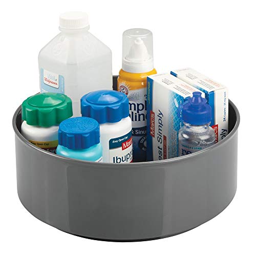 Schminkutensilien geordnet aufbewahren – mit dem mDesign Kosmetik Organizer! Dieser Schmink Organizer von mDesign erlaubt einen schnellen Einsicht. Die Badablage bietet ausreichend Platz, um vulgo Medikamente oder Nahrungsergänzungsmittel zu deponieren. Die erhöhten Kanten halten die Gegenstände zäh im Bad Organizer. Das drehbare Badzubehör dient als Aufbewahrungsmöglichkeit für Make-up, Schminkutensilien und Pflegeprodukte sowie Pinsel, Cremes, Salben, Nagellack und Lotionen. Der Kosmetik Organizer eignet sich nicht für die Geschirrspüler, kann Daher ganz leicht per Hand gereinigt werden. Die Produkteigenschaften im Detail drehbarer Schmink Organizer fürs Bad für Medikamente und Make-up vulgo für andere Räume nicht spülmaschinengeeignet Material: BPA-freier Kunststoff und Edelstahl Maße: 22,9 cm im Durchmesser x 8,6 cm in der Höhe Farbe: dunkelgrau Modellnummer: 06807MDBSTEU