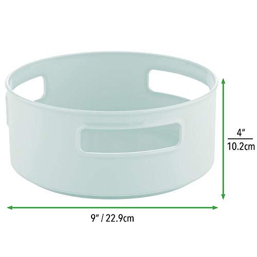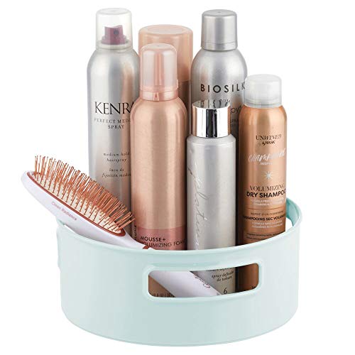 Schminkutensilien geordnet aufbewahren – mit dem Kosmetik Organizer von mDesign! Dieser Schmink Organizer von mDesign erlaubt einen schnellen Einsicht. Die Badablage bietet ausreichend Platz, um auch Medikamente oder Nahrungsergänzungsmittel zu deponieren. Die erhöhten Kanten halten die Gegenstände abgehärtet im Bad Organizer. Das drehbare Badzubehör dient als Aufbewahrungsmöglichkeit für Make-up, Schminkutensilien und Pflegeprodukte sowie Pinsel, Cremes, Salben, Nagellack und Lotionen. Der Kosmetik Organizer eignet sich nicht für die Geschirrspülmaschine, kann Immerhin ganz leicht von Hand gereinigt werden. Die Produkteigenschaften im Detail drehbarer Schmink Organizer fürs Bad für Medikamente und Make-up auch für andere Räume nicht spülmaschinengeeignet Material: BPA-freier Kunststoff und Edelstahl Maße: 22,9 cm im Durchmesser x 10,2 cm in der Höhe Farbe: mintgrün Modellnummer: 11412MDBSTEU