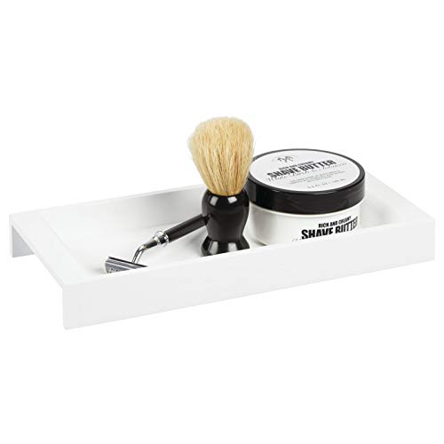 DURCHDACHTES DESIGN: Die Kosmetikablage passt mit ihrem langen, schmalen Design leicht auf den Waschtisch. Zudem sind die Ränder erhöht, sodass nichts herausfallen kann.
