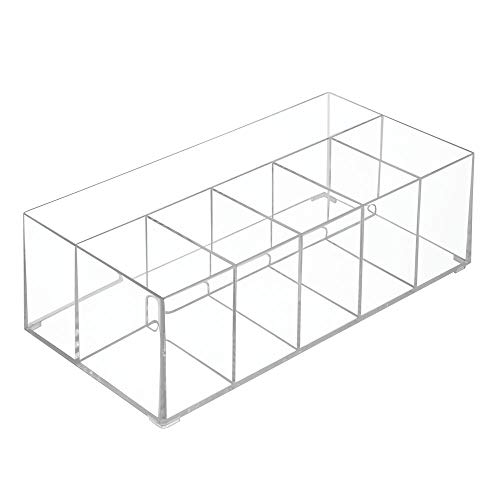Schminkutensilien geordnet aufbewahren – mit der mDesign Kosmetikbox!Bringen Sie Ordnung in Ihre Make-up-Aggregierung! Bei dieser transparenten Box von mDesign handelt es sich um ein Aufbewahrungssystem für Nagellack, Mascara und andere Kosmetikprodukte, die Sie in den sechs Fächern wunderbar ordnen können. Robustes Acryl sorgt für eine lange Haltbarkeit.Die Produkteigenschaften im Detailideal für den Wasch- oder Schminktischviel Platz in 6 Fächern Maße: 32,5 cm x 16,5 cm x 10,6 cmFarbe: durchsichtigMaterial: KunststoffModellnummer: 8417MDCEU