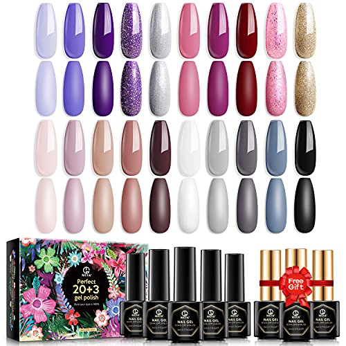 MEFA Gel Nagellack Set 20 Farben mit Glänzend & Matt Top Base Coat Gel und Geschenkbox, Nude Glitter Gel Nagel Soak Off…