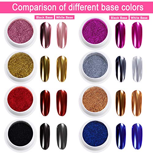 Verschiedene Grundfarben repräsentieren unterschiedliche Spiegeleffekte, es bringt Ihren Nagel metallischer, wenn Sie schwarzen Grundlack auftragen, und bringt Ihnen einen durchscheinenden Effekt und Blendung, während die Grundlackfarbe weiß ist.